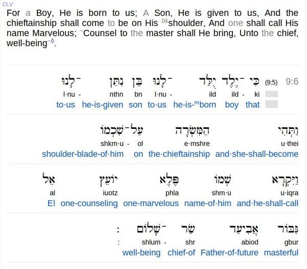 In Jewish interpretations, particularly those from rabbinic or scholarly traditions, the verse is sometimes rendered differently, emphasizing that the "names" are actually a descriptive sentence about God rather than a list of titles for the child.